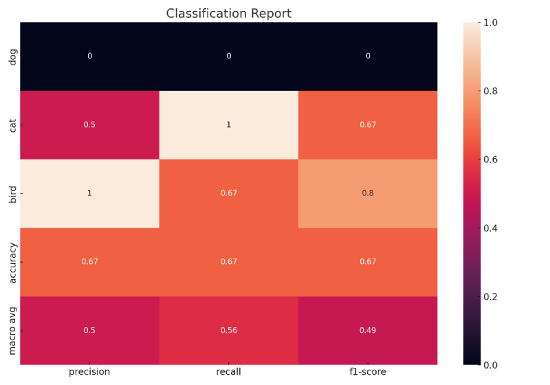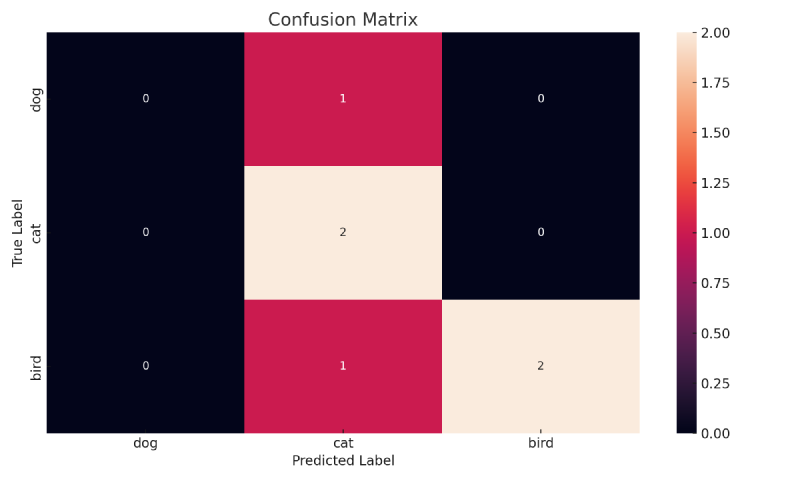y_pred = ["cat", "cat", "bird", "cat", "cat", "bird"]